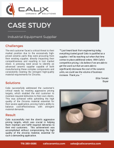 A manufacturer was losing market share because of the high cost of their ceramic parts from an existing supplier. By partnering with a new zirconia supplier who could meet aggressive pricing targets, they were able to maintain their quality standards while regaining a competitive edge.